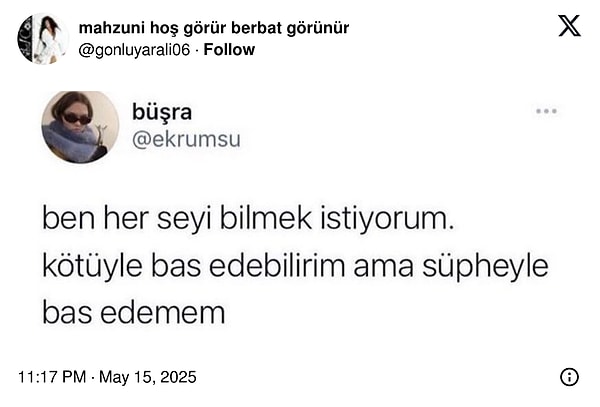 İnsan bazen o denli bir noktaya gelir ki bilmemenin verdiği düzmece huzuru, gerçeğin yıkıcı aydınlığına tercih eder. Toplumsal medyada bu ikilemi sorgulayanlar büyük bir tartışmanın fitilini ateşledi. Bir taraf bilmemenin huzurunu vurgularken bir kısım da işi goygoya vurdu.
