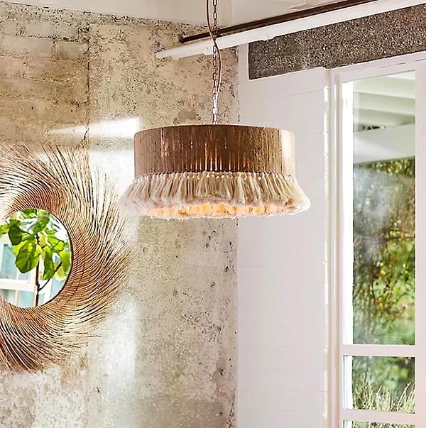 Salonda ya da yatak odanızda kullanabileceğiniz konutunuzun havasını değiştirecek bohem rustik püsküllü avize.