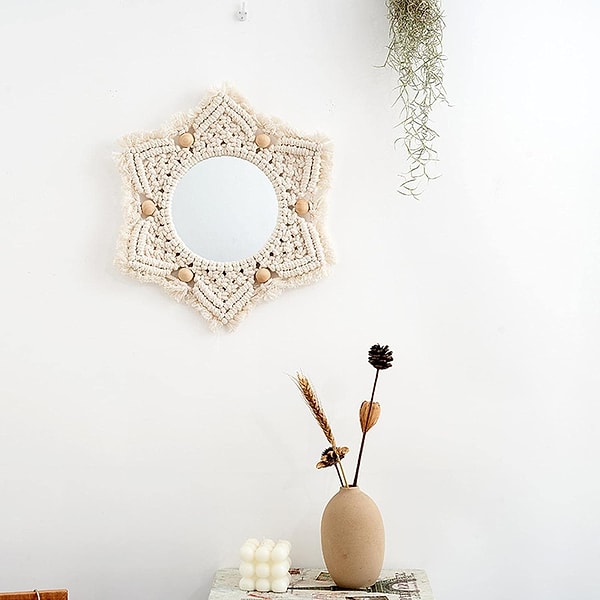 Makrome ayrıntıları ile duvarınıza zarafet katacak bir ayna.