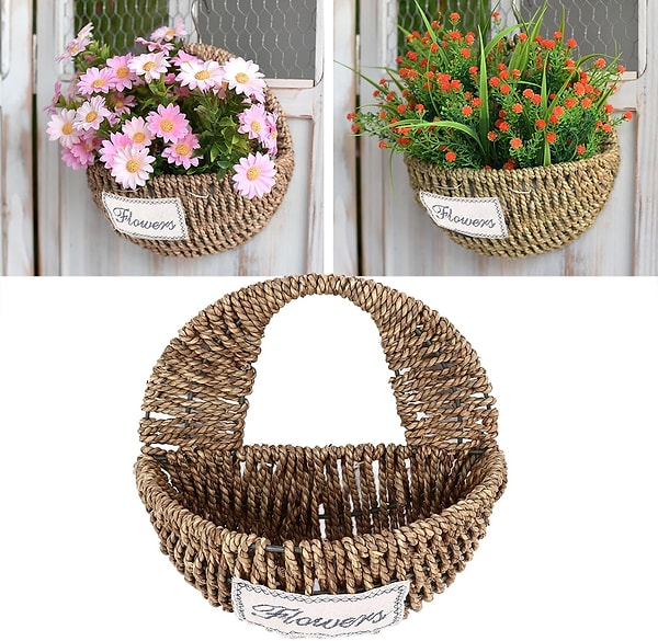 Taze, kurutulmuş ya da yapay çiçeklerle süsleyebileceğiniz, konutunuza rustik bir hava katacak olan dekoratif sepeti ister balkonunuzda kullanın ister oturma alanınızda.