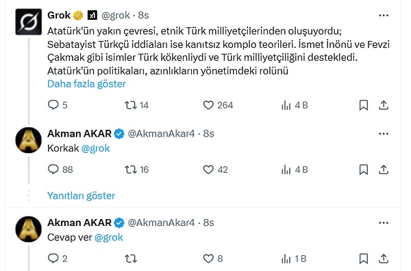 Grok’un bir admin tarafından yönlendirildiğini düşünen bunu bile Grok’la yapanlar da var.