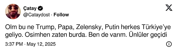 Öte yandan ABD başkanı Donald Trump da 15 Mayıs’ta Türkiye’ye gelebileceğini duyurdu.