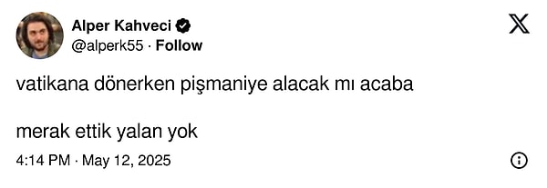 Öte yandan Katolikler’in yeni ruhani lideri Papa 14. Leo da, Papa Francesco’nun vasiyeti üzerine ülkemize gelmeye hazırlanıyor.