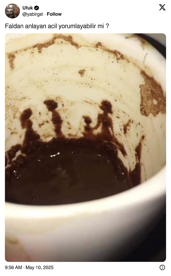 Bu kere bir toplumsal medya kullanıcısı, yorumu epey aşikar olan bir falın yorumlanmasını istedi;