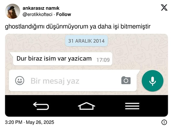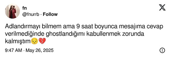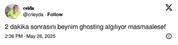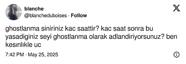 Mesela kaç saat sonra bu yaşadığınız şeyi ghostlanma olarak isimlendiriyorsunuz? Bir toplumsal medya kullanıcısı bu soruyu ortaya atıp kendisinin yalnızca üç saat sonu olduğunu söyledi.