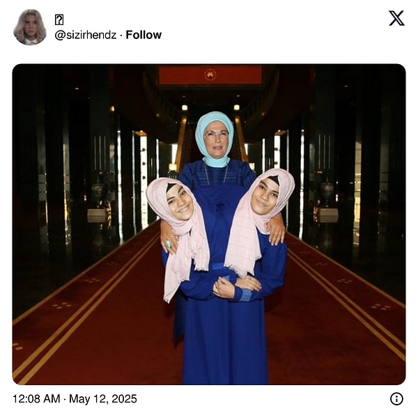 2019 yılında çekilen bu görselde Emine Erdoğan, Kahramanmaraş’ta yaşayan siyam ikizleri Sema ve Ayşe Tanrıkulu ile bir ortaya gelmişti.