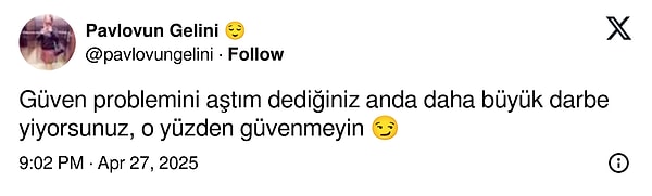 Güven sorunlarınız varsa geçmiş olsun!