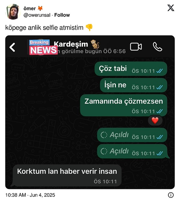Kardeşlik bağlantıları bireyden bireye aileden aileye değişse de büyük olan kardeşlerin sorumluluğu biraz daha fazladır. Duruma nazaran ağabeyler ve ablalardan kardeşlerin bazen ufak bazen olmadık istekleri olabilir. Bir X kullanıcısı da kardeşinin kendisinden ‘su maymunu’ istediğini paylaştı. Her yeri talan etti. Sonuçta istediğini bulup kardeşini keyifli etse de bu mesajlaşmalar bir akıma dönüştü.