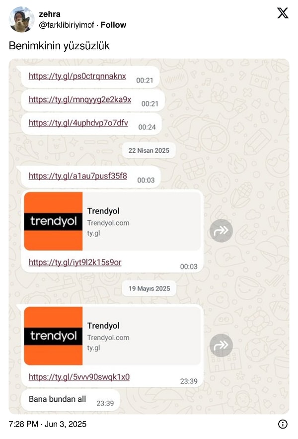 Ama bu paylaşımları görüp kendi mesajlaşmalarını enteresan bulup paylaşanlar da oldu.