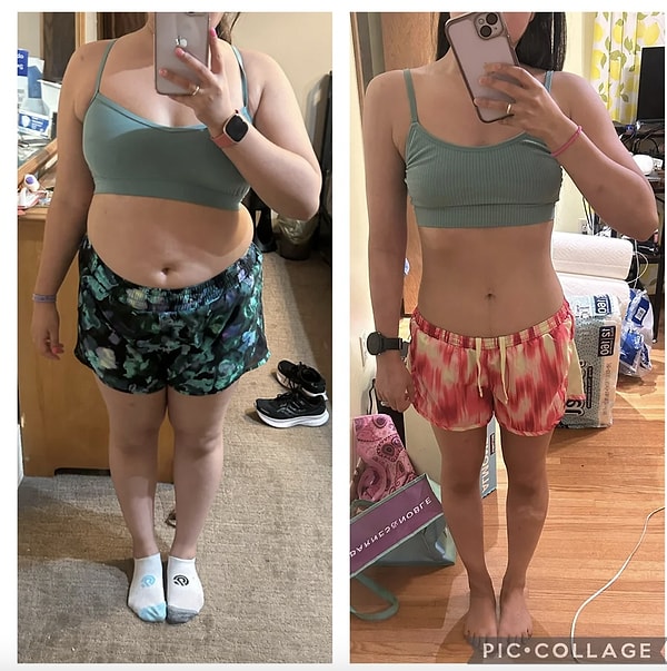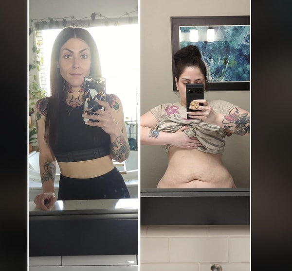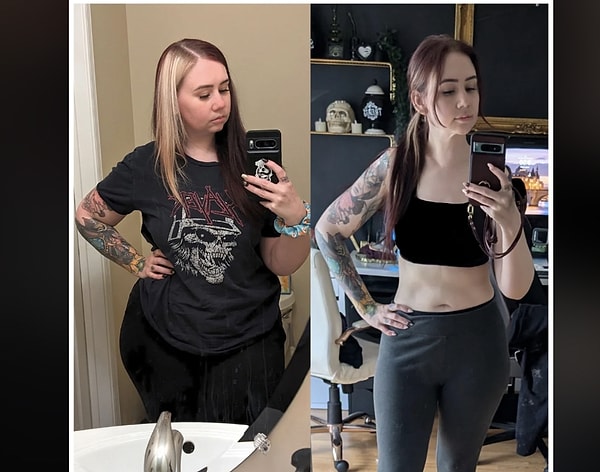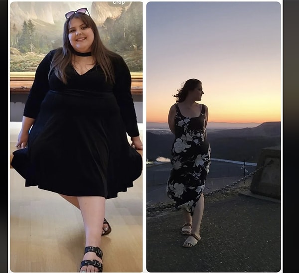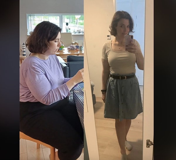 ‘Her fotoğraf ortasında yaklaşık bir buçuk yıl ve 70 kilo var lakin bence şahane bir karşılaştırmaydı. Her iki fotoğrafta da kendimi hoş hissettim.