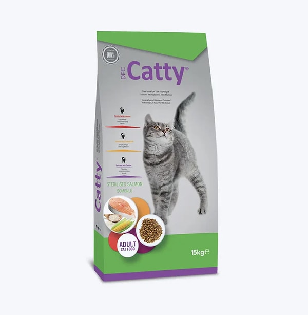 15 kiloluk mama yetişkin ve kısırlaştırılmış kedinin muhtaçlıklarını karşılamak için hazırlanmış. Somonlu mama kedin için alabileceğin kaliteli besinlerden biri. Kedinin severek yiyeceği bir mama arıyorsan Catty kedi mamasını deneyebilirsin.
