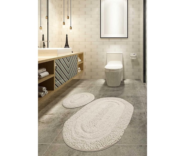 Banyonuza sade şıklık katacak 2’li banyo halısı seti.