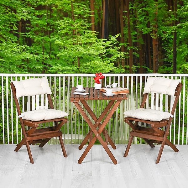 Katlanabilir sistemi ile rahatlıkla taşıyabileceğiniz minderleri ile konfor sunan bir masa sandalye seti.