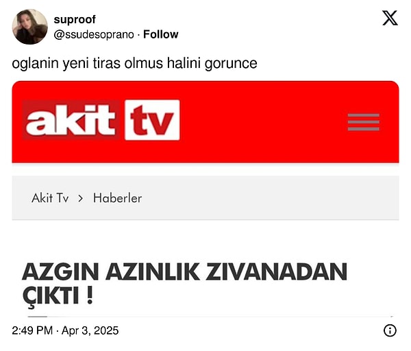 Yeni ismi X gönlümüzden silemedikleri adıyla Twitter mizah açısından derya deniz. Kimi en makul görüntü kesitlerini paylaşıyor, kimi günlük hayatta yaşadıklarını paylaşıyor, kimi de cuk oturan tespitlerle ekranlarımıza konuk oluyor. Geçtiğimiz hafta herkesi neşelendiren tweetlerin pek birçoklarında bayan kullanıcıların imzası vardı. Bakalım eril telaffuzlara başvurmadan kimler güldürmüş?