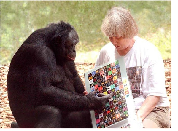 Dahası, Koko isimli gorilin işaret lisanı görüntülerini izleyerek Amerikan İşaret Dili’nin birtakım işaretlerini kendi kendine öğrendi. Kız kardeşi Panbanisha ile ortasında geçen bir olayda, duvarın gerisinden ‘yoğurt’ için çıkardığı özel sesle onun dikkatini çekmeyi başardı