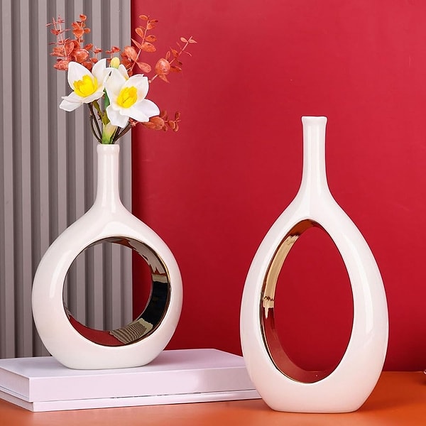 İçi boş seramik vazo, lüks ve minimalist stilde bir mesken dekorasyonu için ülkü bir seçim olacaktır.