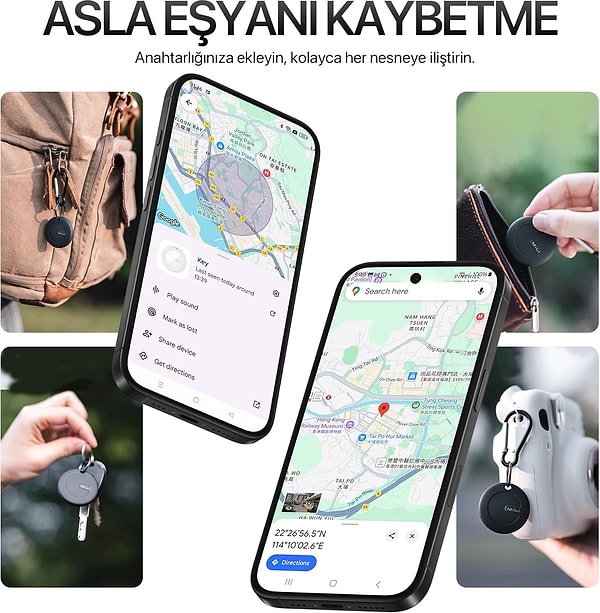 Şık ve kompakt dizayna sahip dairesel aygıt, çanta, cüzdan, anahtarlık üzere eşyalarınıza kolaylıkla takılabilir. Hafif ve sağlam yapısı sayesinde günlük kullanıma uygundur.