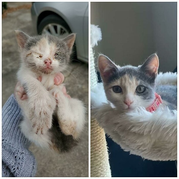 9. Evvelce bir deri bir kemik kalan bu tüylü dostumuzun geçirdiği değişim akıllara zarar! 😻
