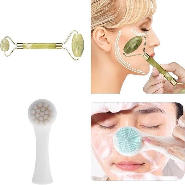 Cildine hem bakım hem de keyif katmaya ne dersin? Çift taraflı cilt temizleme fırçası, silikon ve yumuşak kıllı yüzeyleriyle cildini nazikçe temizliyor, gözenekleri derinlemesine arındırıyor. Ve bir de cilt masaj aleti var! Hem yüzünü hem de boynunu masaj yaparak rahatlatan bu doğal taş, kan dolanımını artırıyor, cildine ışıltı katıyor. Hem yüz bakımını hem de masaj keyfini bir ortada yaşa.