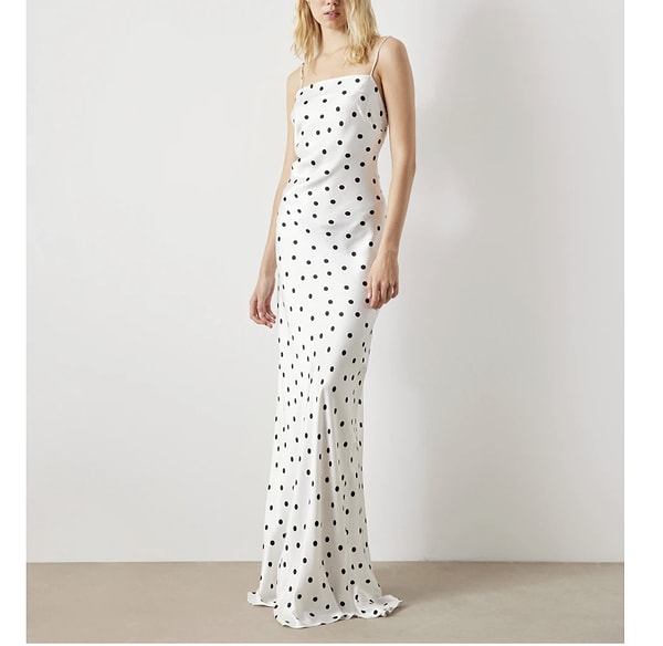 Bu dönemin beğenilen desenlerinden puantiyeyi zarafetle buluşturan İpekyol’un uzun saten elbisesi, hem şıklığı hem de çağdaş feminen duruşuyla tarz sahibi bayanların favorisi olmaya aday.