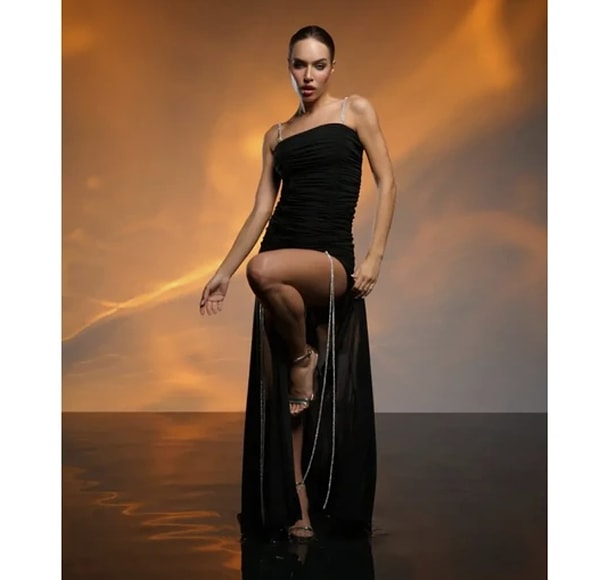 Tek omuz ayrıntısıyla çağdaş bir zarafet sunarken, üzerindeki ışıltılı payetlerle her adımda dikkatleri üzerine çekeceksin. Düğünler, davetler ya da özel gecelerde ‘ben geldim’ demenin en şık yolu olabilir.