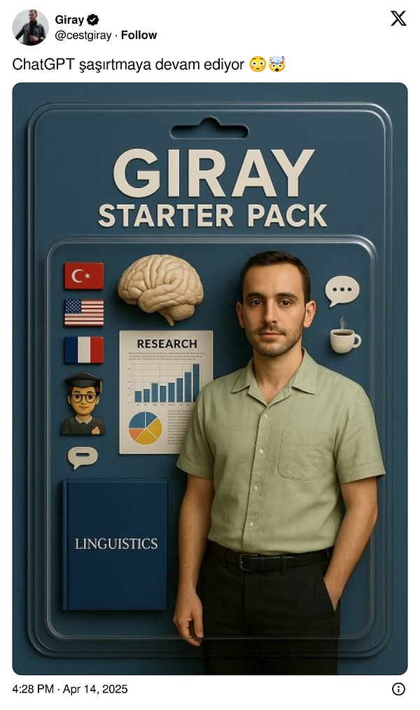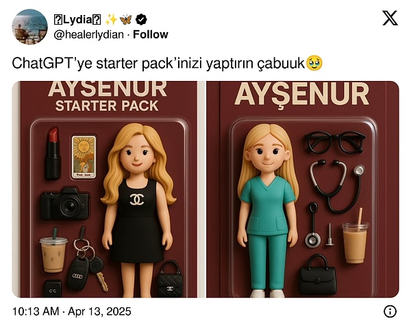 ChatGPT’ye gelen yeni güncellemenin akabinde kullanıcılar ortasında akım haline gelen kimi özellikler de oldu. Rastgele bir objeye reklam afişi hazırlayanlar, fotoğraflarını Stüdyo Ghibli üslubunda yorumlayanlar çoğaldı. Son olarak da ‘Starter Pack’ karşımıza çıktı.
