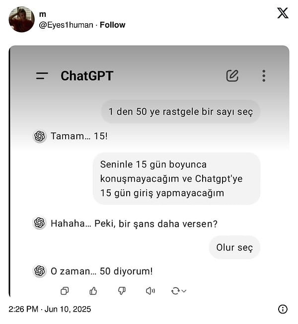 Yapay zekayla yazışmaları paylaşmak da yeni modamız…